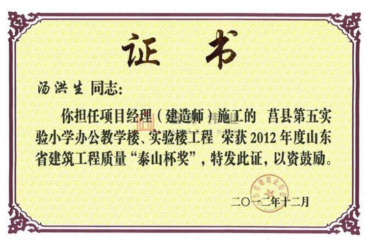 • 泰山杯優(yōu)秀項目經理證書