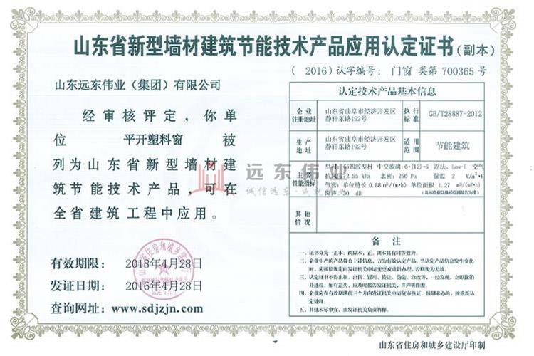 2. 塑料窗節(jié)能認(rèn)證證書