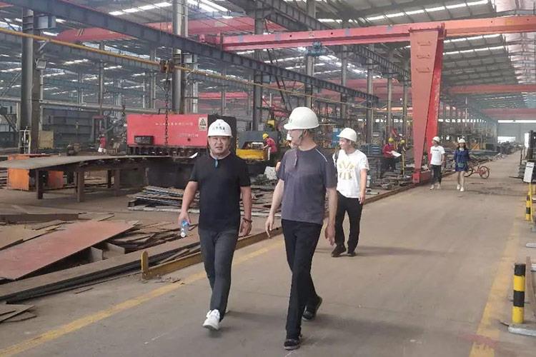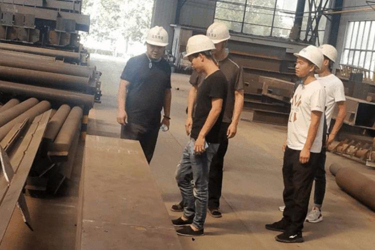 隨后,公司領導陪同考察組成員一起去往鋼結構加工車間、網(wǎng)架加工車間、管桁架加工車間進行實地考察??疾旖M對相關技術問題進行了問詢和討論,對產(chǎn)品質(zhì)量進行嚴格考察并給予充分的贊賞。
